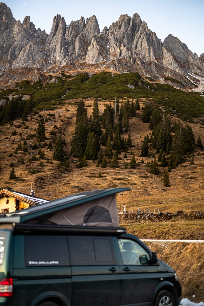 Rano budzisz się z widokiem na monumentalne ściany skalne, a wieczorem możesz podziwiać zachód słońca nad Alpami prosto sprzed kampera.